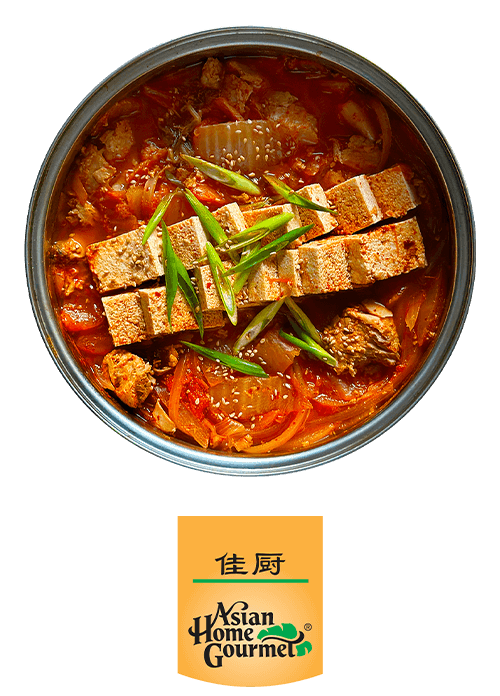It is a staple Korean soup made with Kimchi, a fermented vegetable dish. Also known as Kimchi JJigae.
