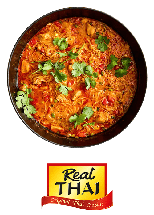 It is a popular dish in Thailand that combines with the flavor of Thai Red Curry and Italian Spaghetti.