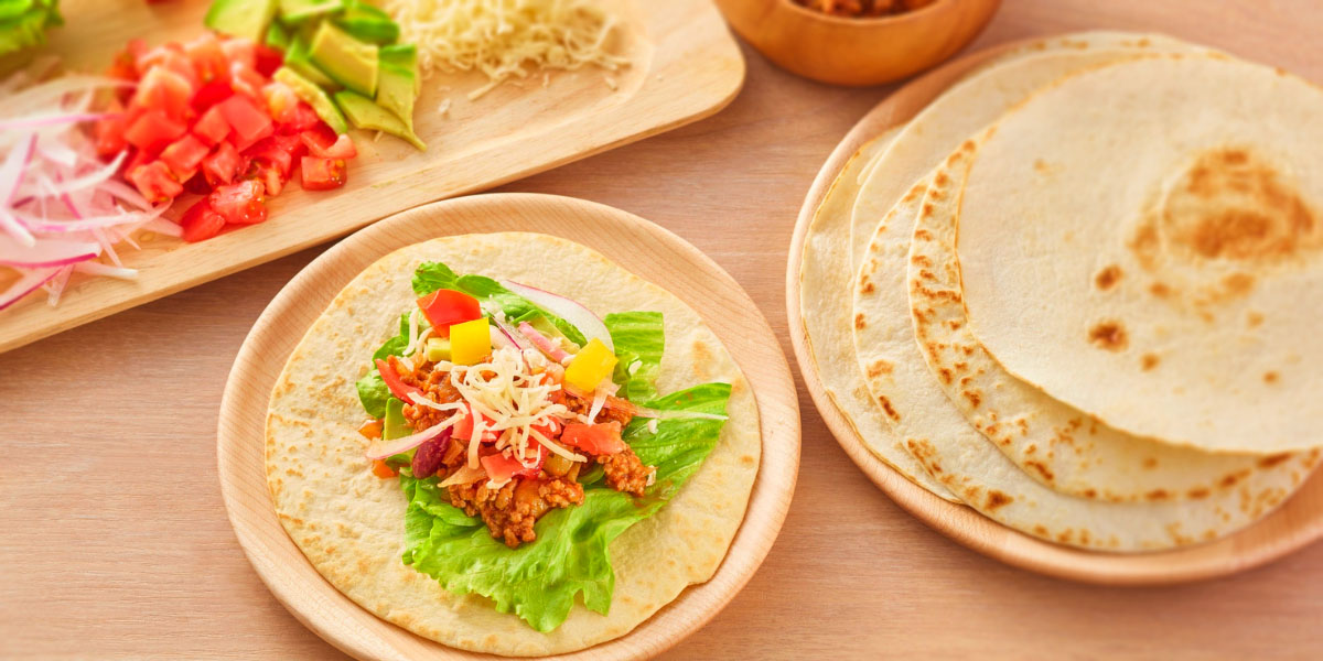 Place tortilla wraps on the benchtop. Sprinkle shredded lettuce over each tortilla. Spoon the cooked mixture onto the wraps and fold to enclose.