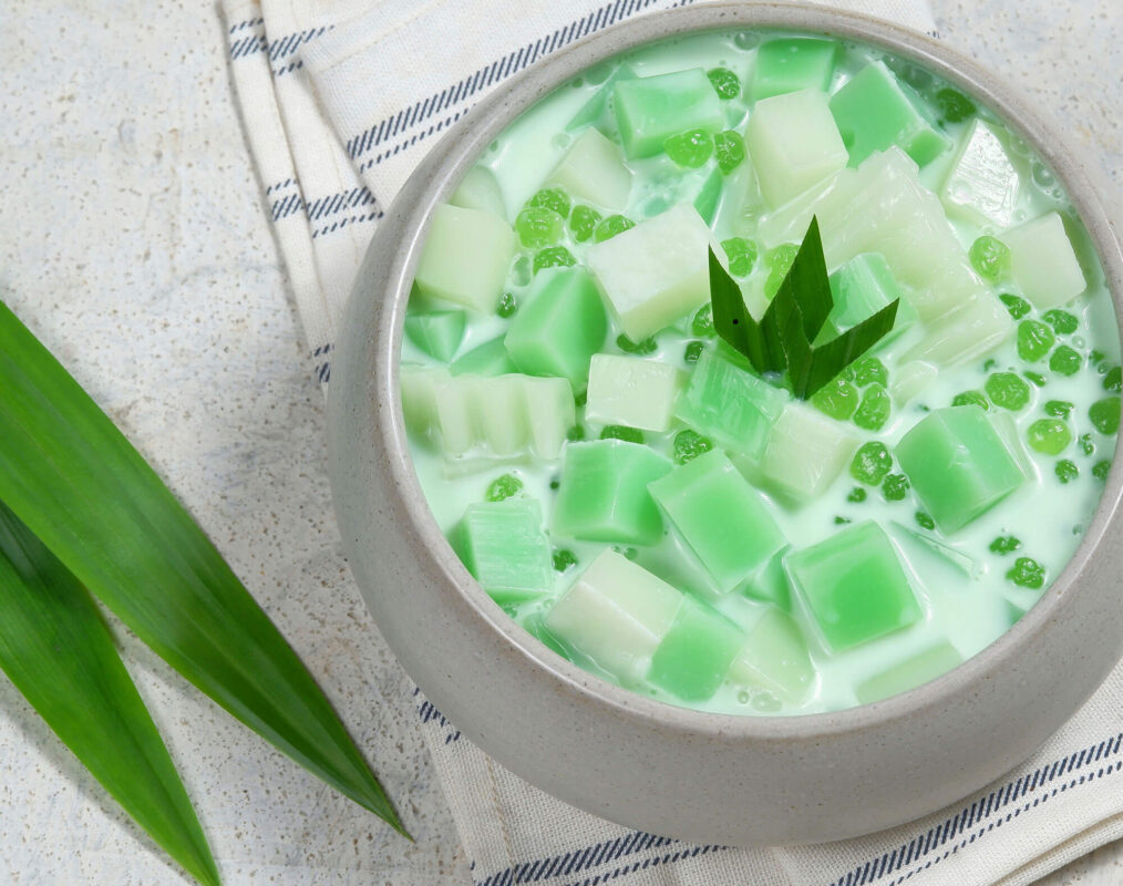- Buko Pandan Salad: A delightful mix of textures and tropical flavors, this salad features young coconut (buko) strips, pandan leaves for a fragrant aroma, sago pearls, and nata de coco (jellied coconut water cubes). Sweetened with condensed milk and cream, it’s a creamy and refreshing dessert salad.
