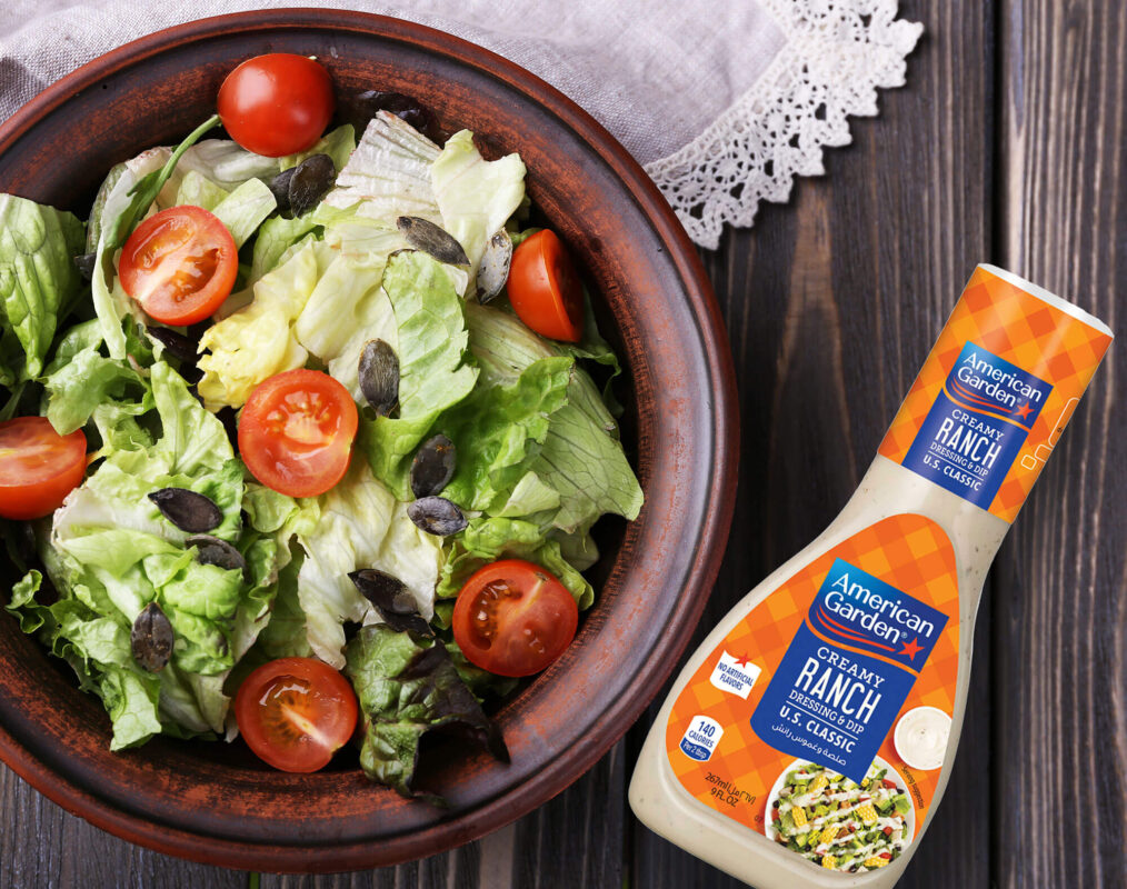 - Drizzle with your desired amount of American Garden Ranch Dressing.