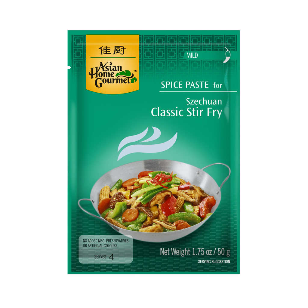 Asian Home Gourmet?s Szechuan Classic Stiry Fry Spice Paste has a touch and blend of chili with sesame oil providing robust flavors of broad bean paste to your stir-fry dishes, now a classic in Szechuan restaurants all over the world. Asian Home Gourmet pastes and mixes contain no flavor enhancers, preservatives or artificial colors. Available in 50g sachets.