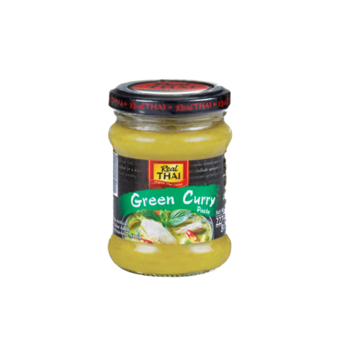 The Real Thai Green Curry Paste is a blend of green chili with spices like coriander seeds, cumin seeds, ground turmeric, ginger, and garlic cloves. Cook and enjoy a delicious meal with this paste. The Green Curry Paste by Real Thai is perfect for stir-fries, marinades, and other curry recipes. Available in 50g and 227g.